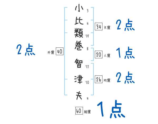 小比類巻智津夫さんの画数の鑑定結果