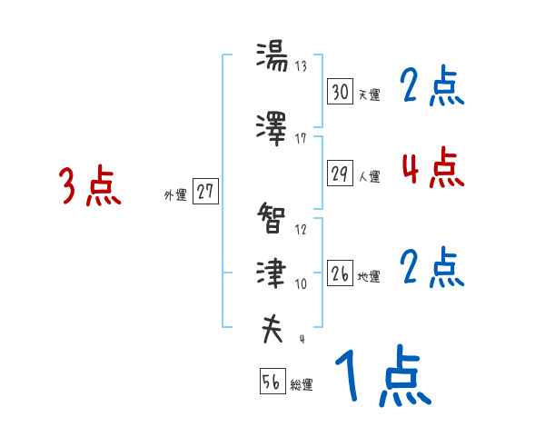 湯澤智津夫さんの画数の鑑定結果