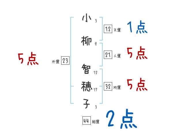 外運![]() | 小柳智穂子さんの外運は23画の5つ星!想像力に優れ活力がある。一代で成功し名誉を手に入れる。 生活面を象徴する運勢です。外部から受ける影響力を表し、結婚運、家庭運や職場、環境への順応性を表します。 |