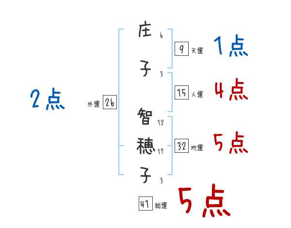 外運![]() | 庄子智穂子さんの外運は26画の2つ星!波瀾万丈かも。信頼できる人を大事にしましょう。 生活面を象徴する運勢です。外部から受ける影響力を表し、結婚運、家庭運や職場、環境への順応性を表します。 |