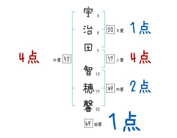 宇治田智穂馨さんの画数の鑑定結果