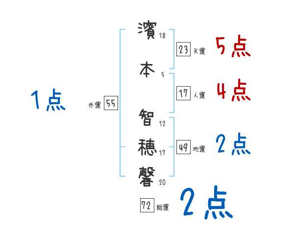 総運![]() | 濱本智穂馨さんの総運は72画の2つ星!災難が多く不安定な生活にならないように注意。明暗のある人生かも。 あなたの人生を表す1番重要な運勢です。生涯を通じて影響する総合運となり、主に50歳以降の晩年期に影響を及ぼします。 |