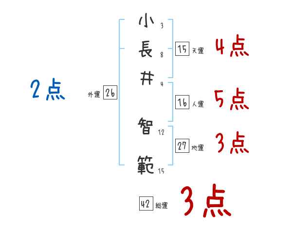 小長井智範さんの画数の鑑定結果