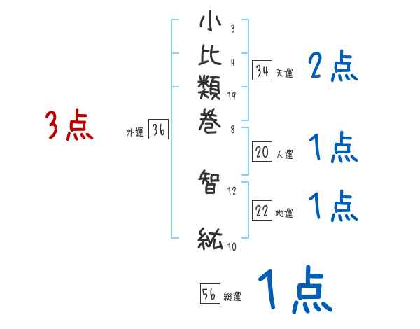 天運![]() | 小比類巻智紘さんの天運は34画の2つ星!独創性に優れるが、自尊心が強く災難に注意しましょう。 家系が持つ宿命的な運勢を表します。祖先から受け継いだ苗字ですので自分の力が及びません。家柄を象徴します。 |