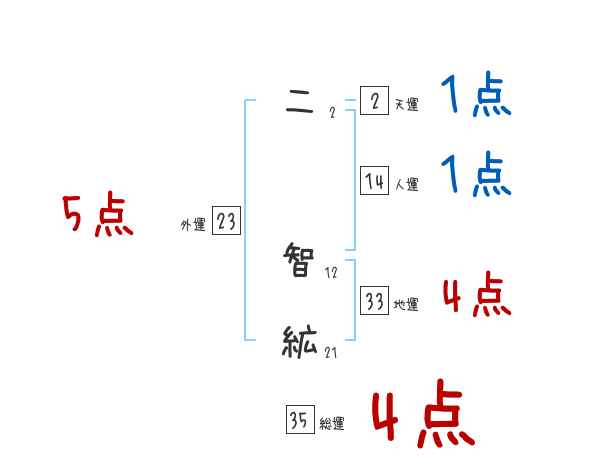 二智絋さんの画数の鑑定結果