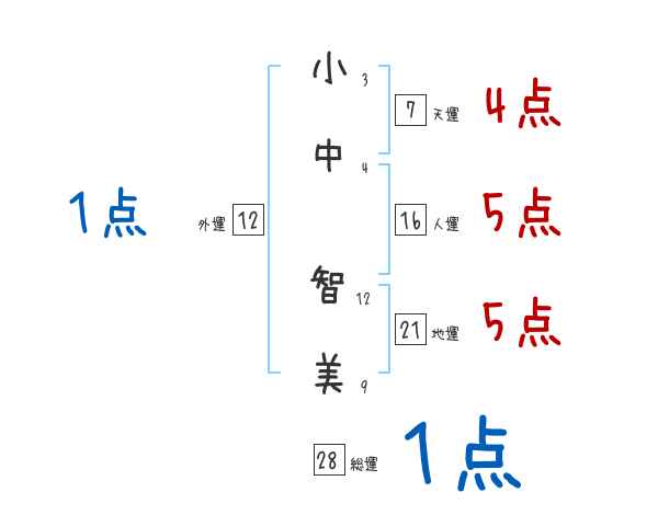 天運![]() | 小中智美さんの天運は7画の4つ星!強い意志や信念を持ち独立心が強い。自立する。 家系が持つ宿命的な運勢を表します。祖先から受け継いだ苗字ですので自分の力が及びません。家柄を象徴します。 |