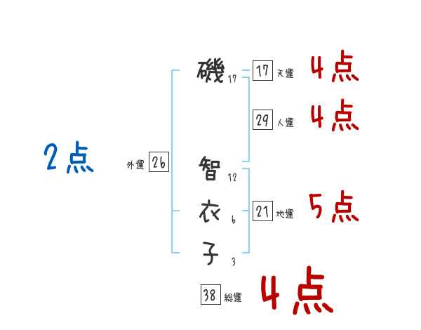 外運![]() | 磯智衣子さんの外運は26画の2つ星!波瀾万丈かも。信頼できる人を大事にしましょう。 生活面を象徴する運勢です。外部から受ける影響力を表し、結婚運、家庭運や職場、環境への順応性を表します。 |