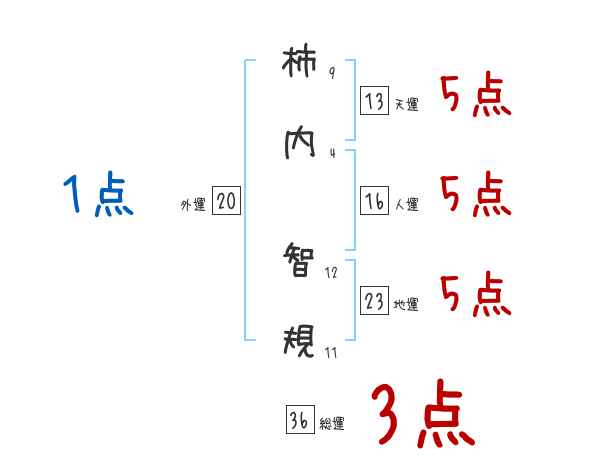 柿内智規さんの画数の鑑定結果