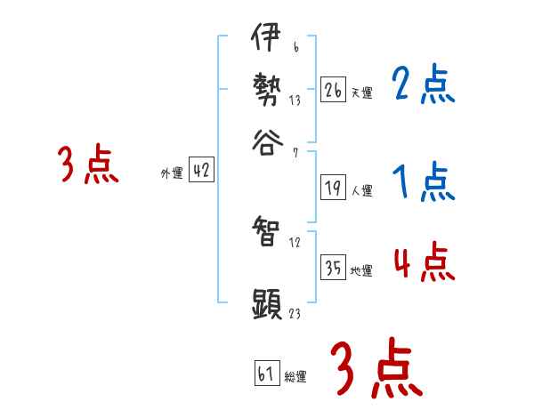伊勢谷智顕さんの画数の鑑定結果