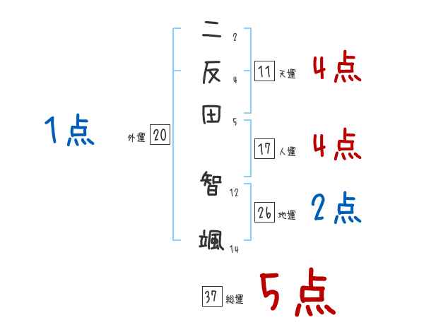 天運![]() | 二反田智颯さんの天運は11画の4つ星!着実に富や地位を得る幸運な人生。 家系が持つ宿命的な運勢を表します。祖先から受け継いだ苗字ですので自分の力が及びません。家柄を象徴します。 |