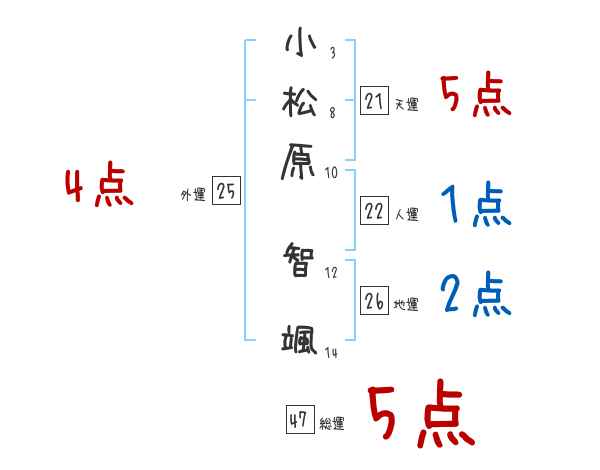 小松原智颯さんの画数の鑑定結果