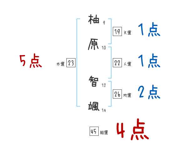 外運![]() | 柚原智颯さんの外運は23画の5つ星!想像力に優れ活力がある。一代で成功し名誉を手に入れる。 生活面を象徴する運勢です。外部から受ける影響力を表し、結婚運、家庭運や職場、環境への順応性を表します。 |