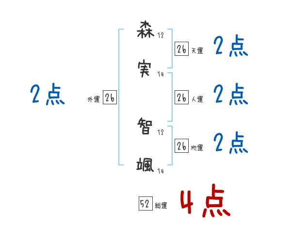 森実智颯さんの画数の鑑定結果