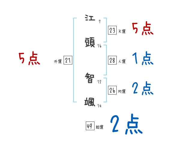 江頭智颯さんの画数の鑑定結果