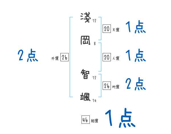 外運![]() | 淺岡智颯さんの外運は26画の2つ星!波瀾万丈かも。信頼できる人を大事にしましょう。 生活面を象徴する運勢です。外部から受ける影響力を表し、結婚運、家庭運や職場、環境への順応性を表します。 |