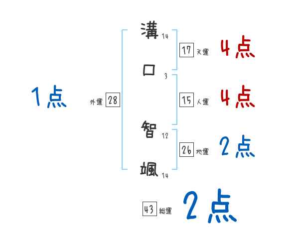 溝口智颯さんの画数の鑑定結果