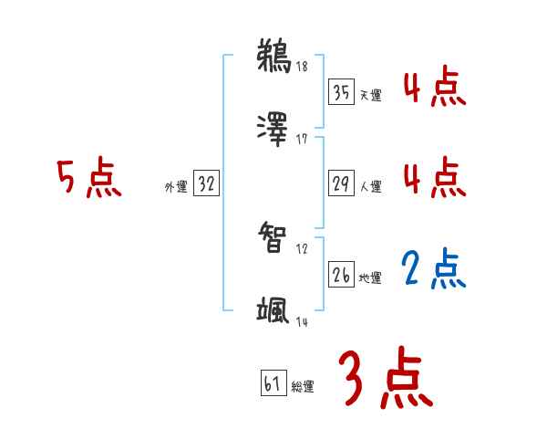 鵜澤智颯さんの画数の鑑定結果