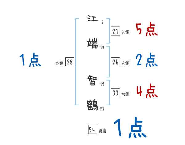 江端智鶴さんの画数の鑑定結果