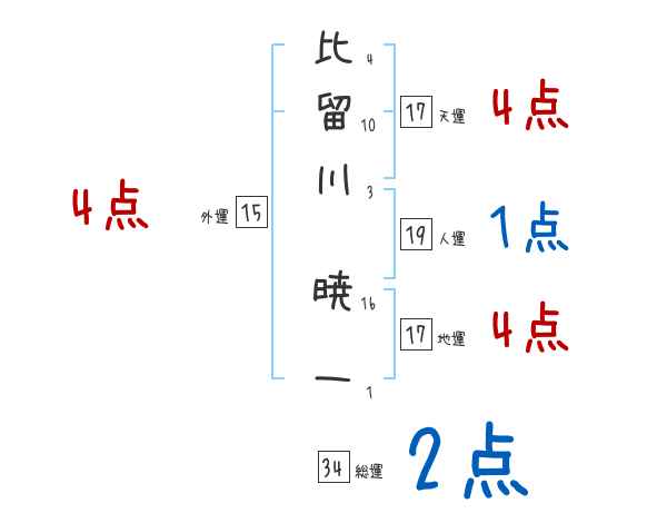 比留川暁一さんの画数の鑑定結果