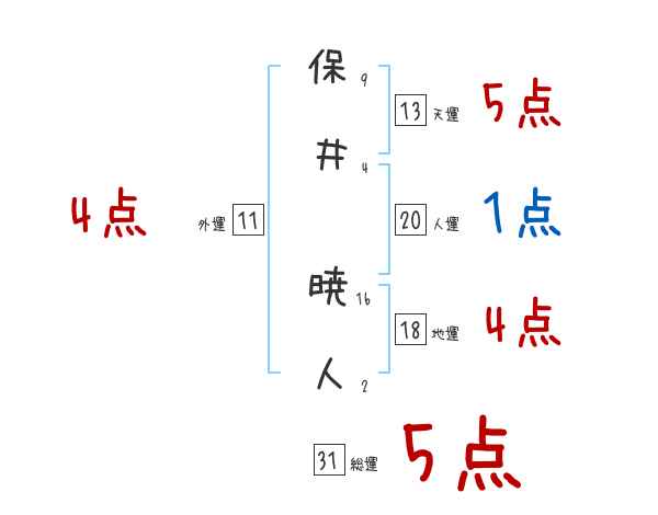 天運![]() | 保井暁人さんの天運は13画の5つ星!才能に恵まれ人気がある。名声を手に入れる。円満な人生。 家系が持つ宿命的な運勢を表します。祖先から受け継いだ苗字ですので自分の力が及びません。家柄を象徴します。 |