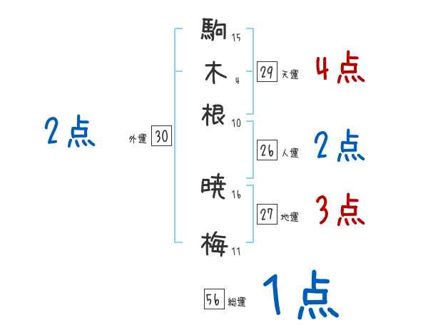 駒木根暁梅さんの画数の鑑定結果