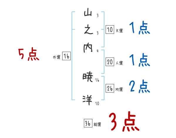山之内暁洋さんの画数の鑑定結果