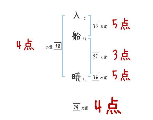 入船暁さんの画数の鑑定結果