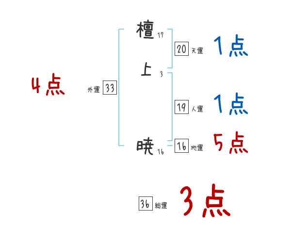檀上暁さんの画数の鑑定結果