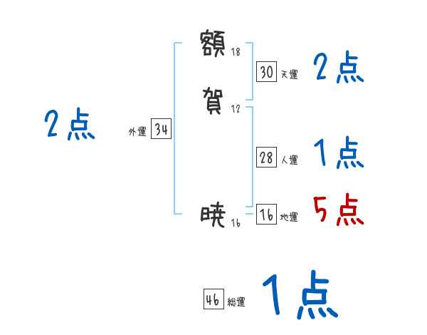 額賀暁さんの画数の鑑定結果