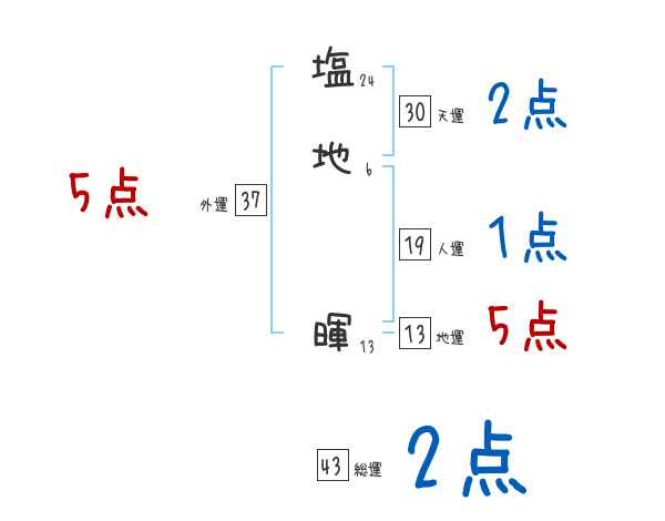 塩地暉さんの画数の鑑定結果