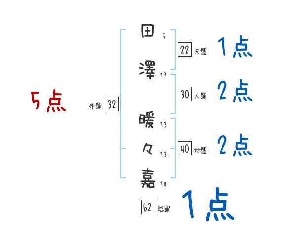 田澤暖々嘉さんの画数の鑑定結果