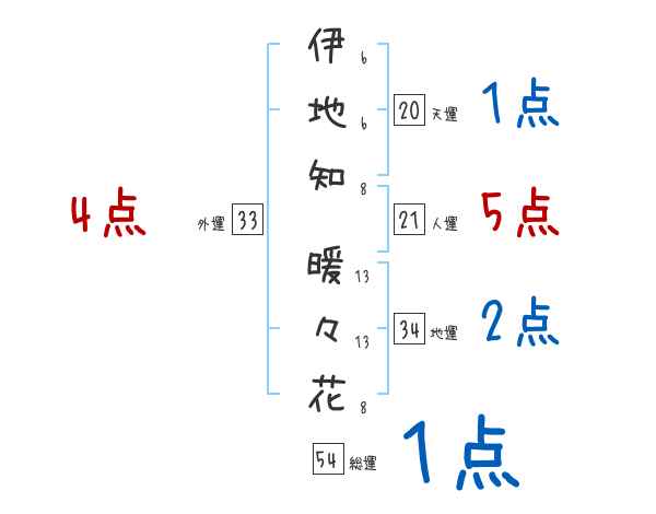 人運![]() | 伊地知暖々花さんの人運は21画の5つ星!統率力がある。独立し成功する。名誉を手に入れる。 性格や才能などを表す2番目に重要な運勢です。人間関係や協調性、社会的な成功に影響します。主に20歳から50歳ぐらいまでの中年期の運勢を表します。 |