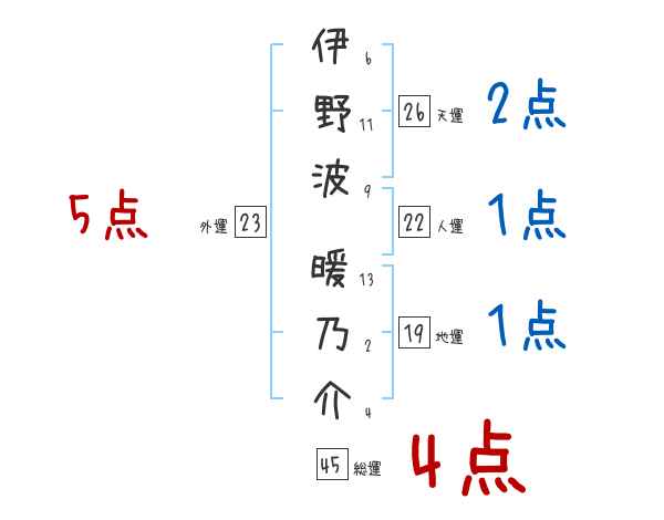総運![]() | 伊野波暖乃介さんの総運は45画の4つ星!もくもくと物事を進め達成する。地味な努力家。 あなたの人生を表す1番重要な運勢です。生涯を通じて影響する総合運となり、主に50歳以降の晩年期に影響を及ぼします。 |