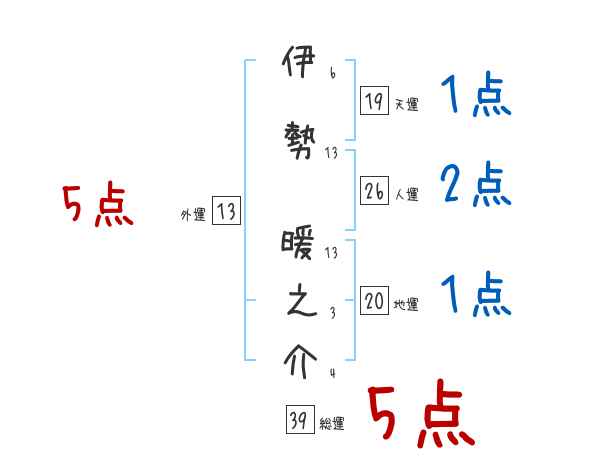 伊勢暖之介さんの画数の鑑定結果