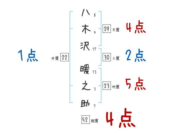 八木沢暖之助さんの画数の鑑定結果
