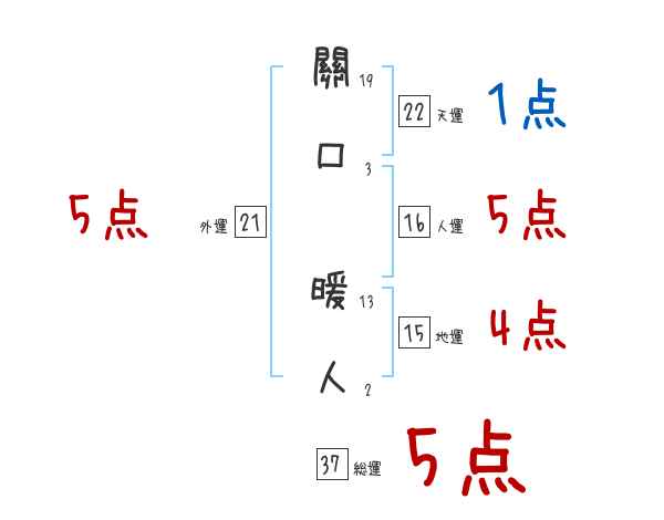 關口暖人さんの画数の鑑定結果