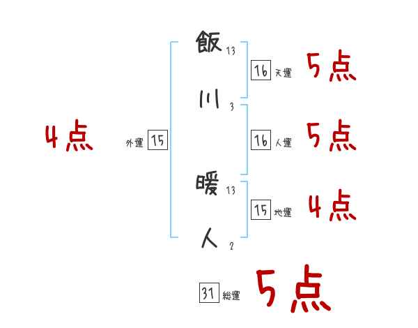 飯川暖人さんの画数の鑑定結果