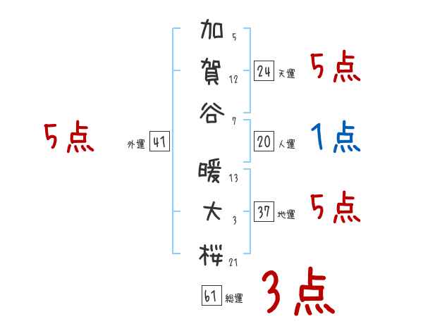 加賀谷暖大桜さんの画数の鑑定結果
