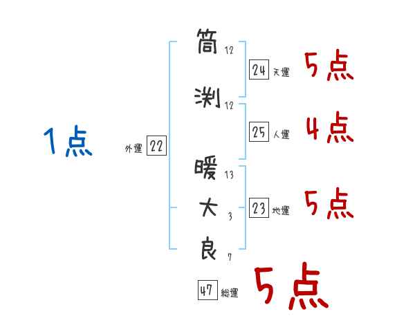 筒渕暖大良さんの画数の鑑定結果