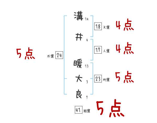 天運![]() | 溝井暖大良さんの天運は18画の4つ星!情熱的で剛気。忍耐力があり信頼される。 家系が持つ宿命的な運勢を表します。祖先から受け継いだ苗字ですので自分の力が及びません。家柄を象徴します。 |