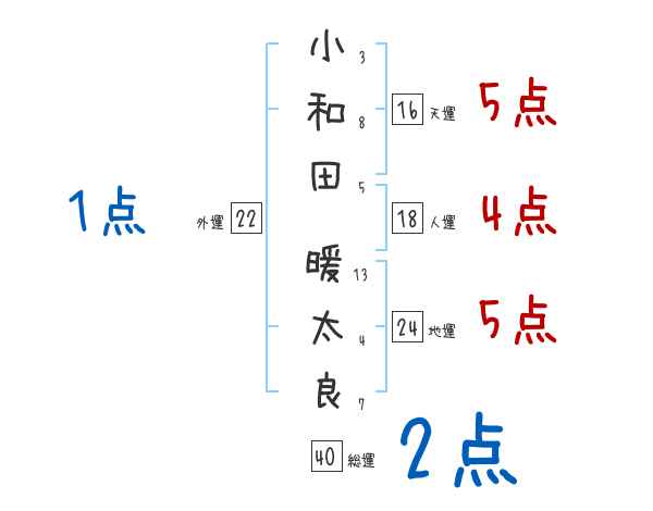 小和田暖太良さんの画数の鑑定結果