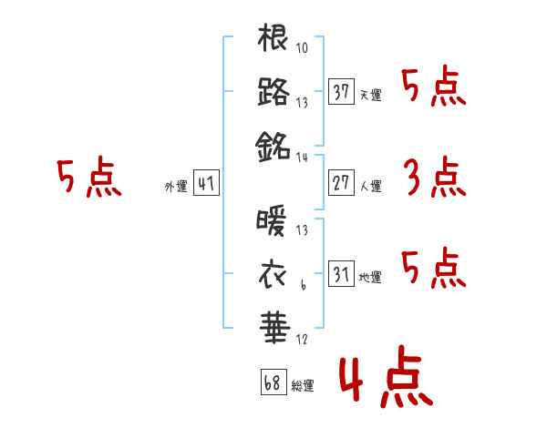 根路銘暖衣華さんの画数の鑑定結果