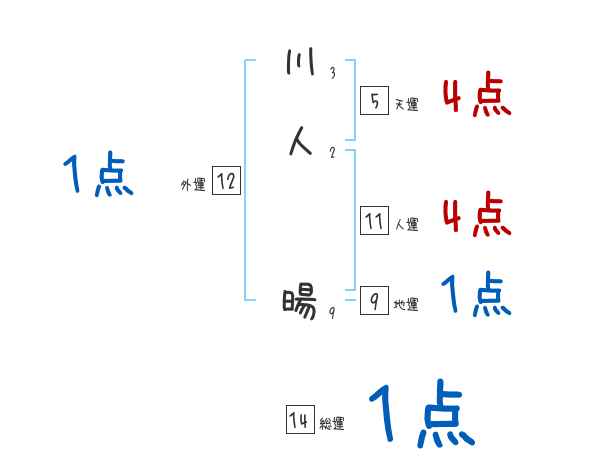 外運![]() | 川人暘さんの外運は12画の1つ星!簡単な失敗で諦めてしまいやすいかも。着実に行動すると良いでしょう。 生活面を象徴する運勢です。外部から受ける影響力を表し、結婚運、家庭運や職場、環境への順応性を表します。 |