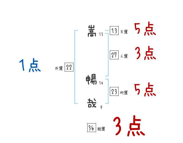外運![]() | 嵩暢哉さんの外運は22画の1つ星!努力することが苦手ないっぽう手先が器用。芸術性にも優れる。 生活面を象徴する運勢です。外部から受ける影響力を表し、結婚運、家庭運や職場、環境への順応性を表します。 |