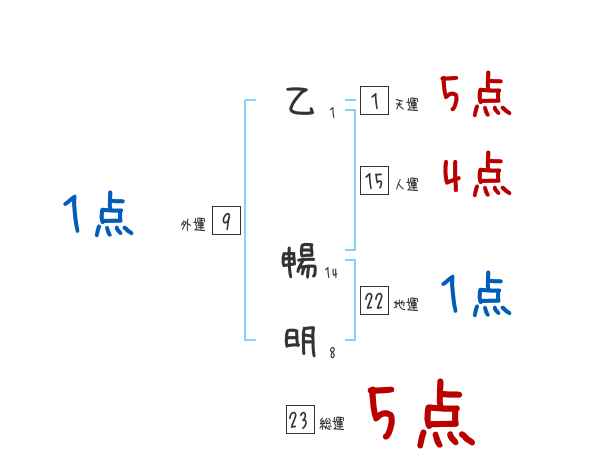 乙暢明さんの画数の鑑定結果