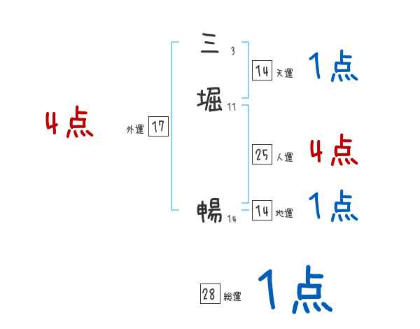 三堀暢さんの画数の鑑定結果