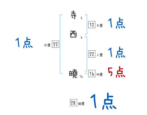 寺西曉さんの画数の鑑定結果