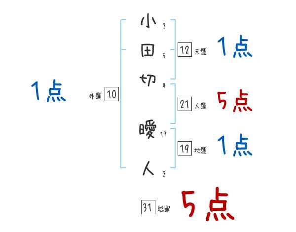 人運![]() | 小田切曖人さんの人運は21画の5つ星!統率力がある。独立し成功する。名誉を手に入れる。 性格や才能などを表す2番目に重要な運勢です。人間関係や協調性、社会的な成功に影響します。主に20歳から50歳ぐらいまでの中年期の運勢を表します。 |