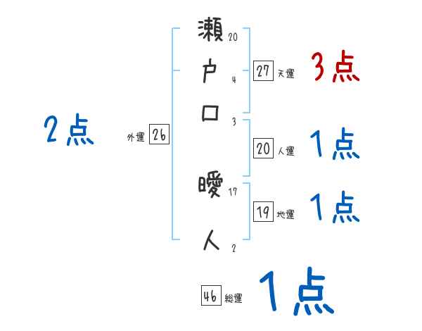 瀬戸口曖人さんの画数の鑑定結果