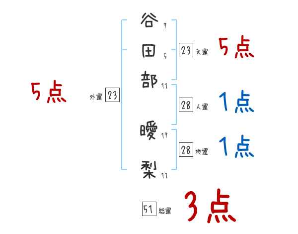 谷田部曖梨さんの画数の鑑定結果